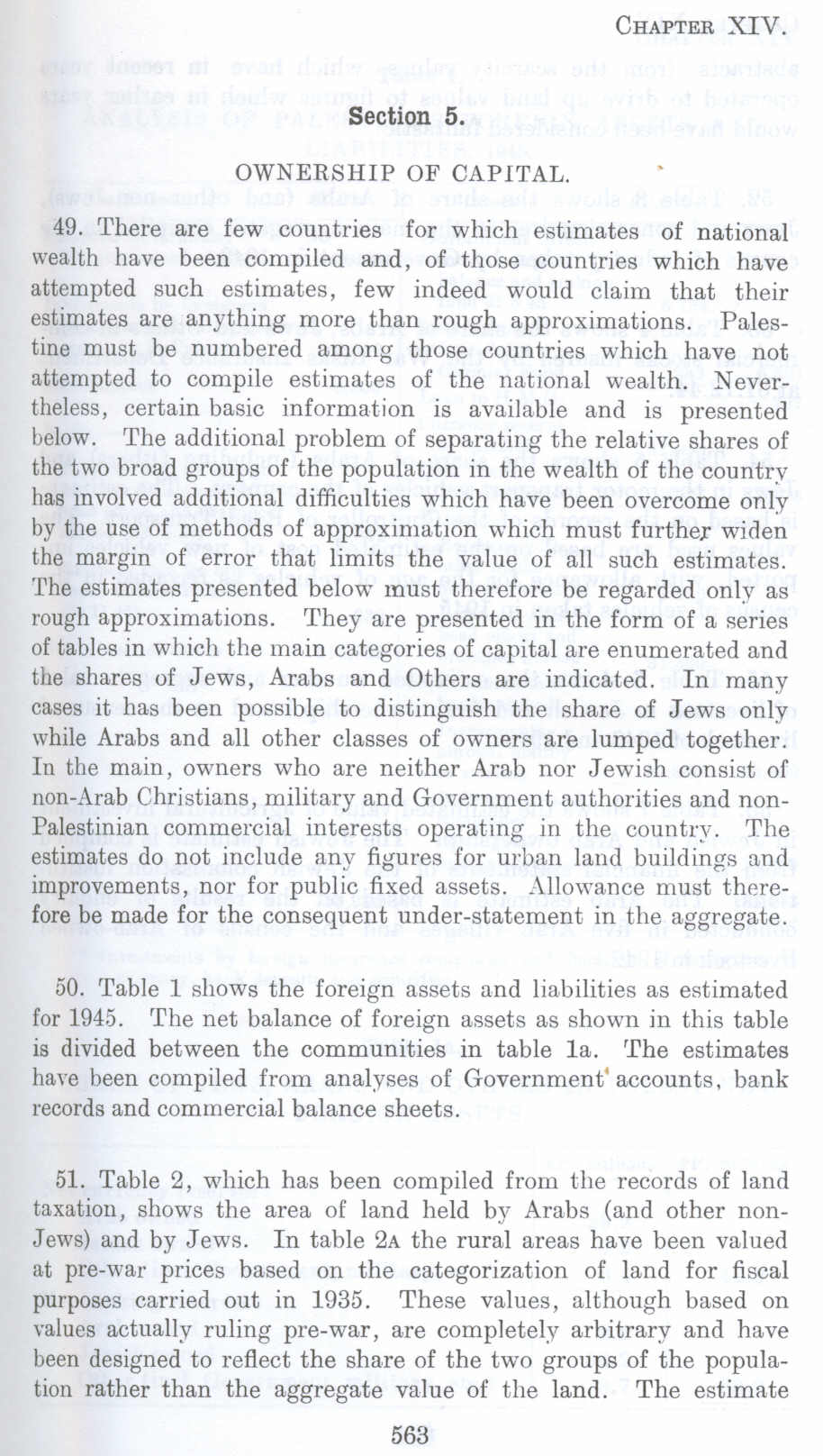 Ownership of Capital in Palestine before 1948 (Nakba), British Mandate: A Survey of Palestine: Volume II - Page 563. Chapter XIV: Finance: Section 5 |