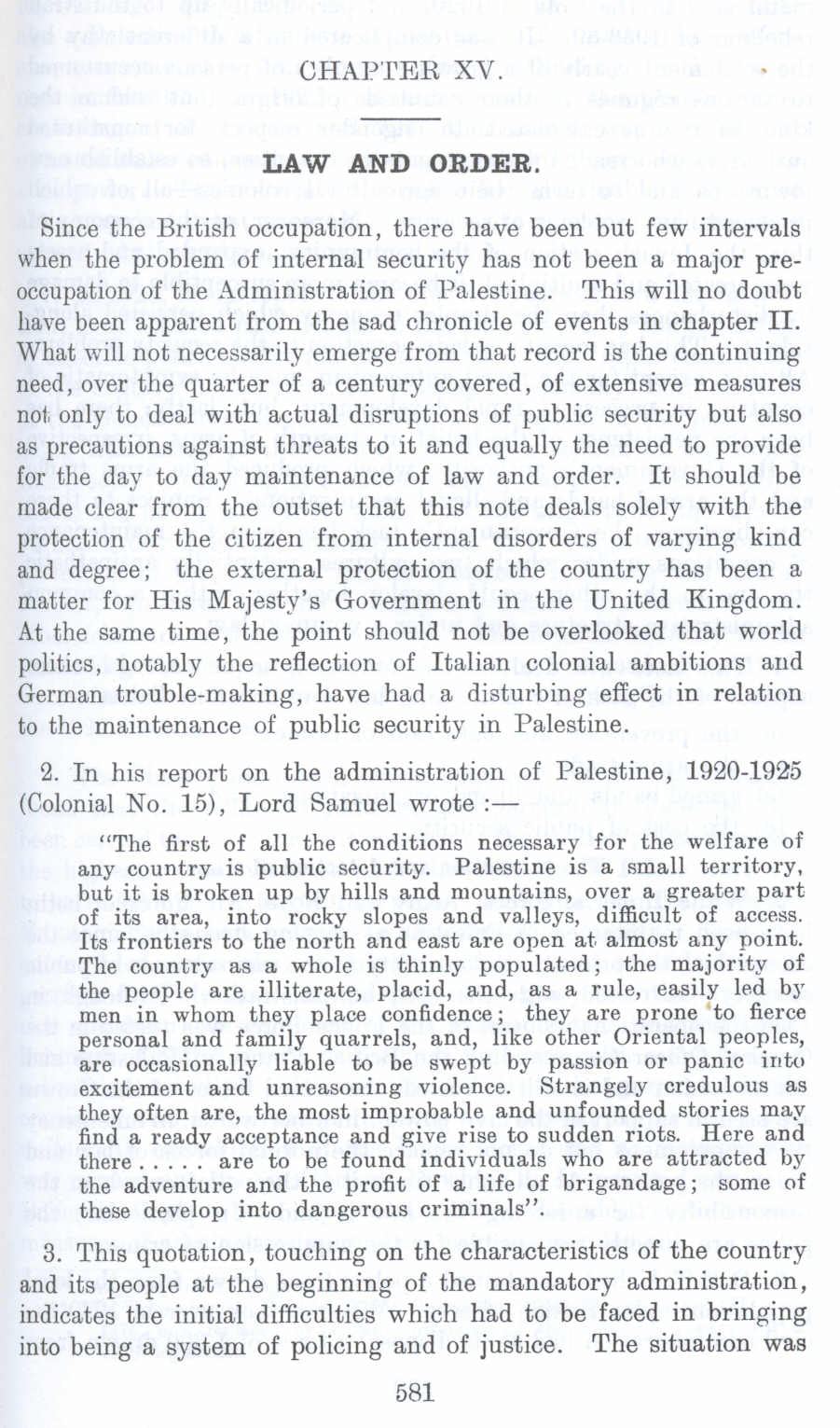Law and Order in Palestine before 1948 (Nakba), British Mandate: A Survey of Palestine: Volume II - Page 581. Chapter XV |