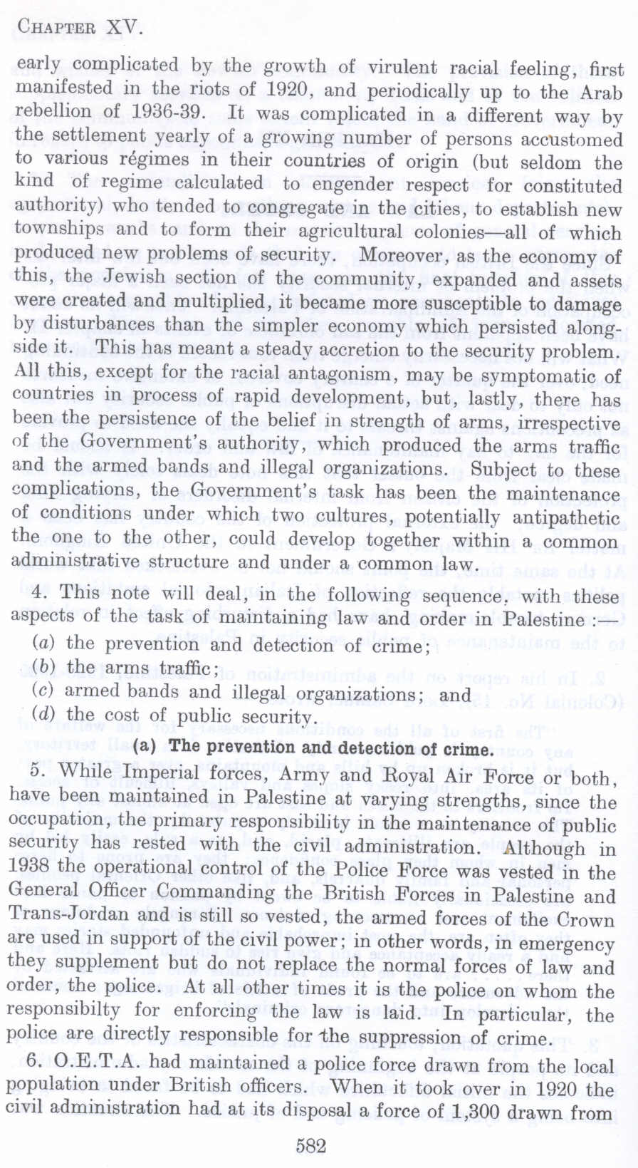 Prevention and Detection of Crime in Palestine before 1948 (Nakba), British Mandate: A Survey of Palestine: Volume II - Page 582. Chapter XV: Law and Order : (a) |