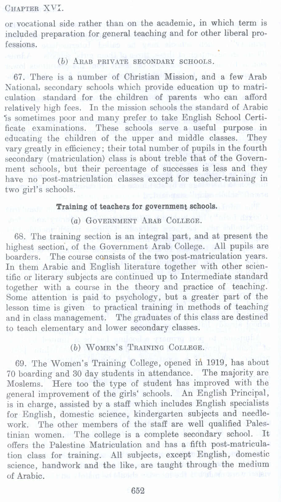 Training of teachers for government schools. (a) GOVERNMENT ARAB COLLEGE.