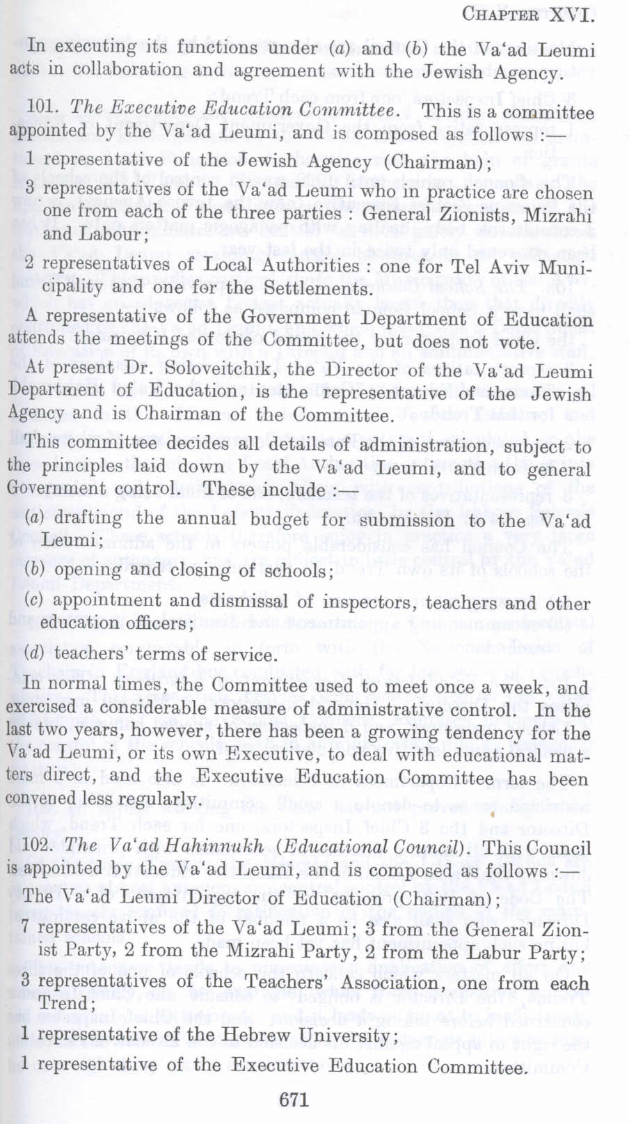 101. The Executive Education Committee. This is a committee appointed by the Vaad Leumi, and is composed as follows:-