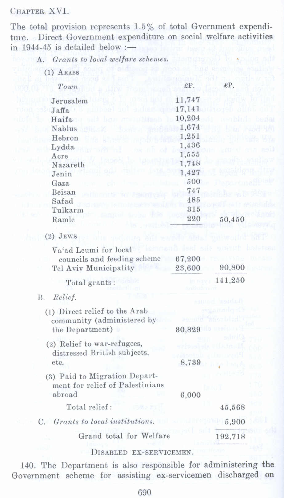 Grand total for Welfare 192,7 JH DISABLED EX-SERVICEMEN.