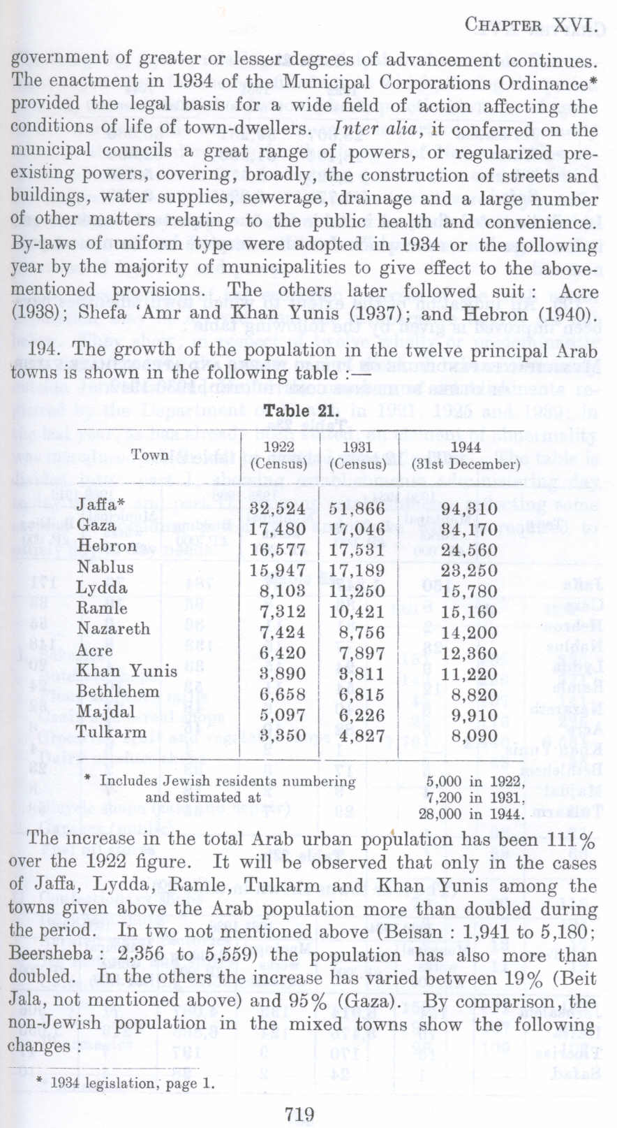 194. The growth of the population in the twelve principal Arab towns is shown in the following table :-