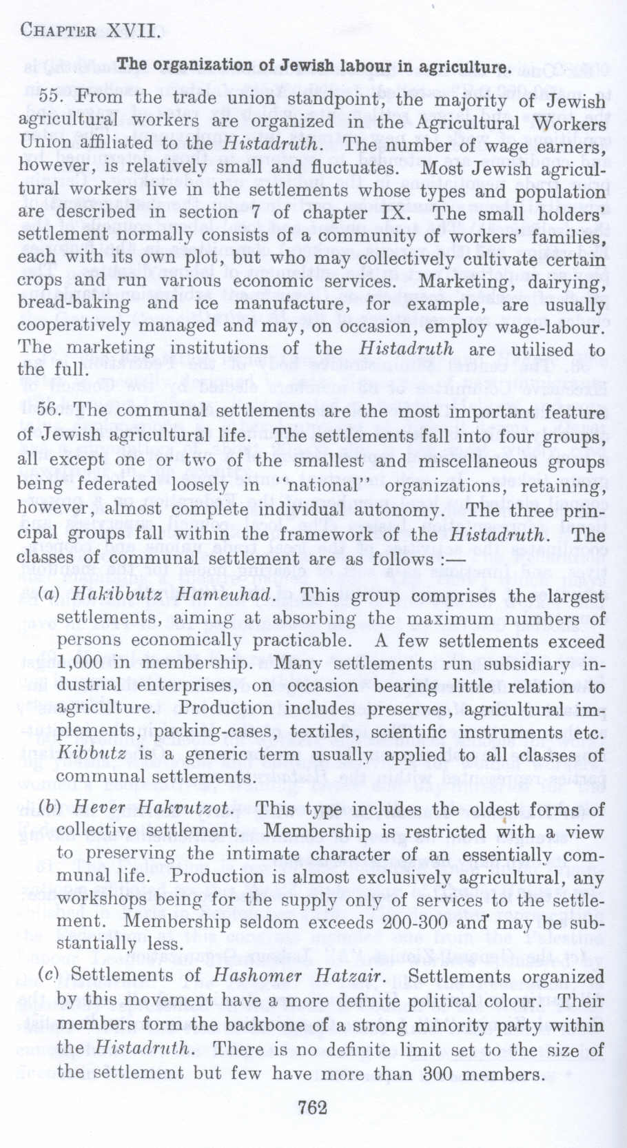The Organization of Jewish Labor in Agriculture in Palestine before 1948 (Nakba), British Mandate: A Survey of Palestine: Volume II - Page 762. Chapter XVII: Labour And Wages: Section 6: Labor Organizations: |