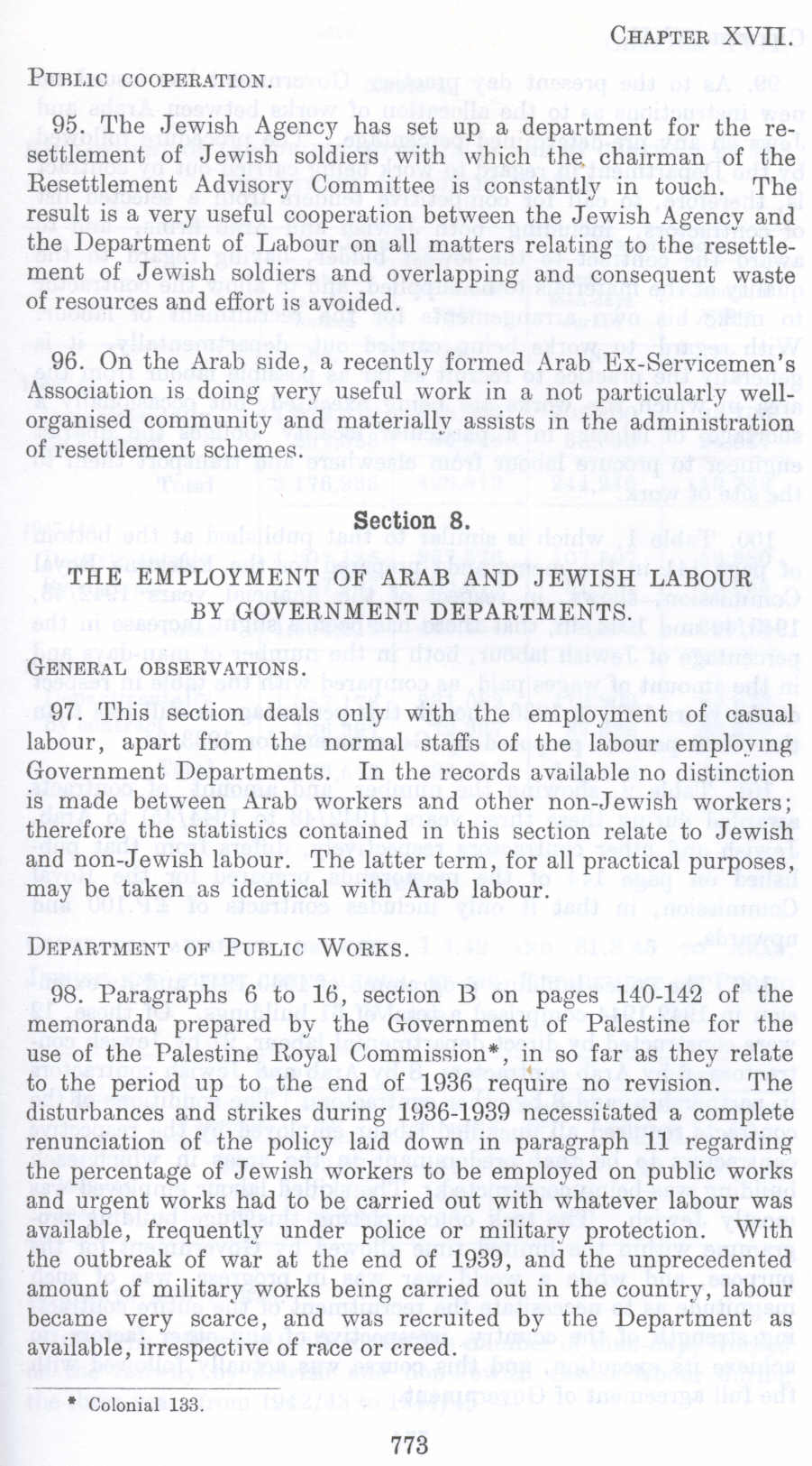 The Employment of Arab And Jewish Labor By Government Departments in Palestine before 1948 (Nakba), British Mandate: A Survey of Palestine: Volume II - Page 773. Chapter XVII: Labour And Wages: Section 8: |