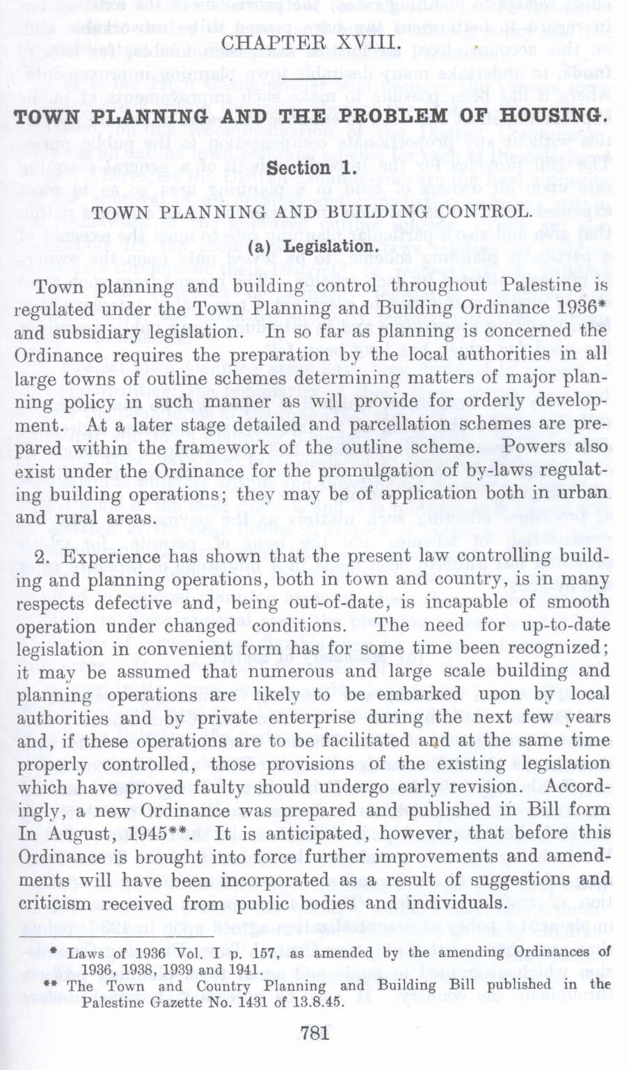Town Planning and The Problem of Housing in Palestine before 1948 (Nakba), British Mandate: A Survey of Palestine: Volume II - Page 781. Chapter XVIII: Section 1: Town Planning And Building Control : (a) Legislation |