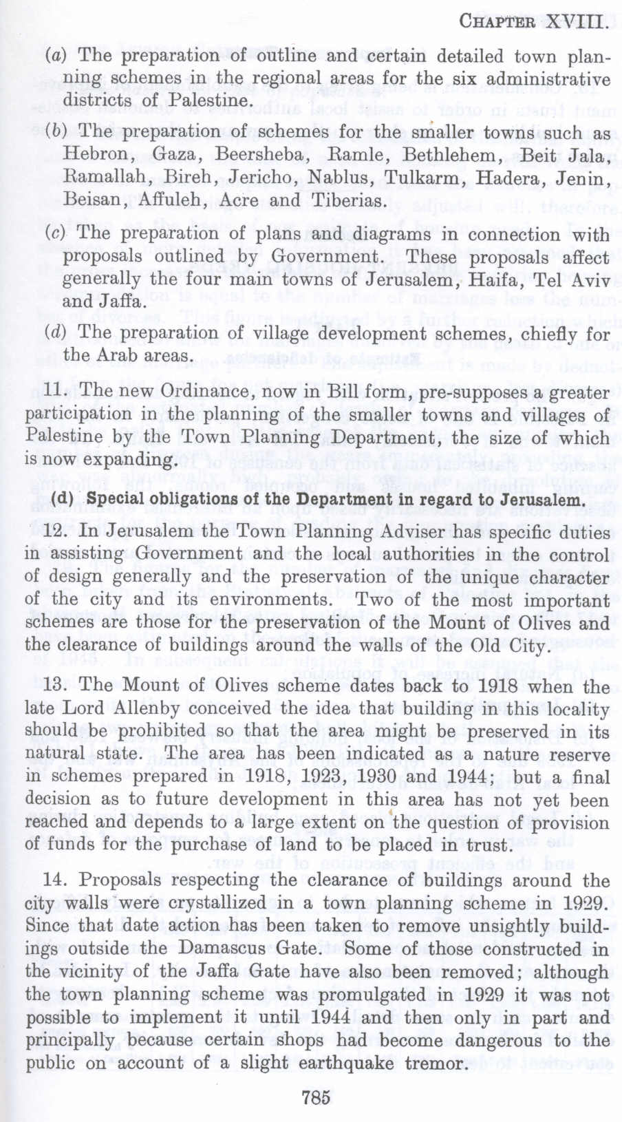 British Mandate: A Survey of Palestine: Volume II - Page 785. Chapter XVIII: Town Planning and The Problem of Housing : Section 1: Town Planning And Building Control : (d) Special Obligations of the Department in regard to Jerusalem in Palestine before 1948 (Nakba), |