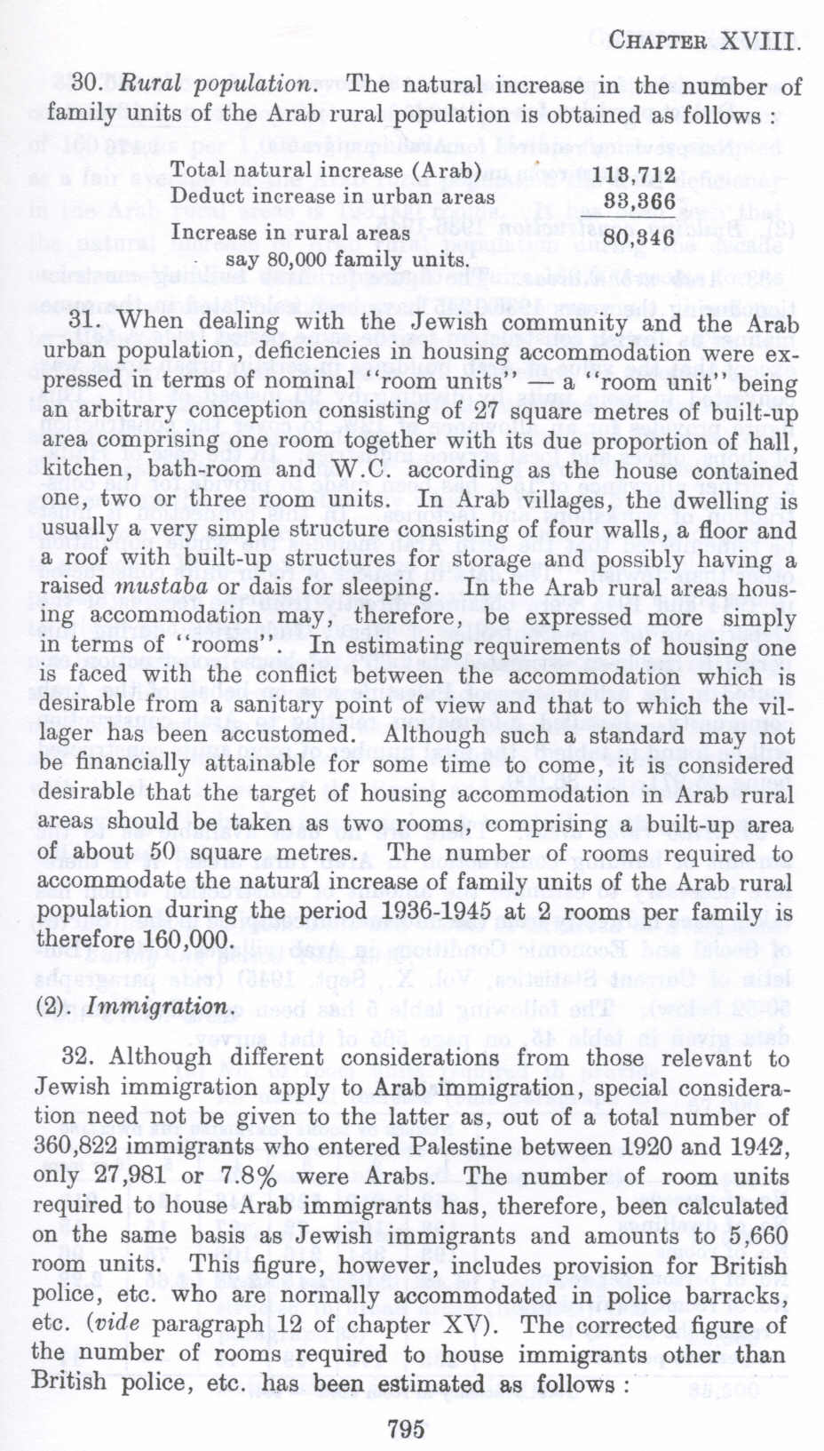 Arab Immigration to Palestine before 1948 (Nakba), British Mandate: A Survey of Palestine: Volume II - Page 795. Chapter XVIII: Town Planning and The Problem of Housing : Section 2: Present Housing Needs : |