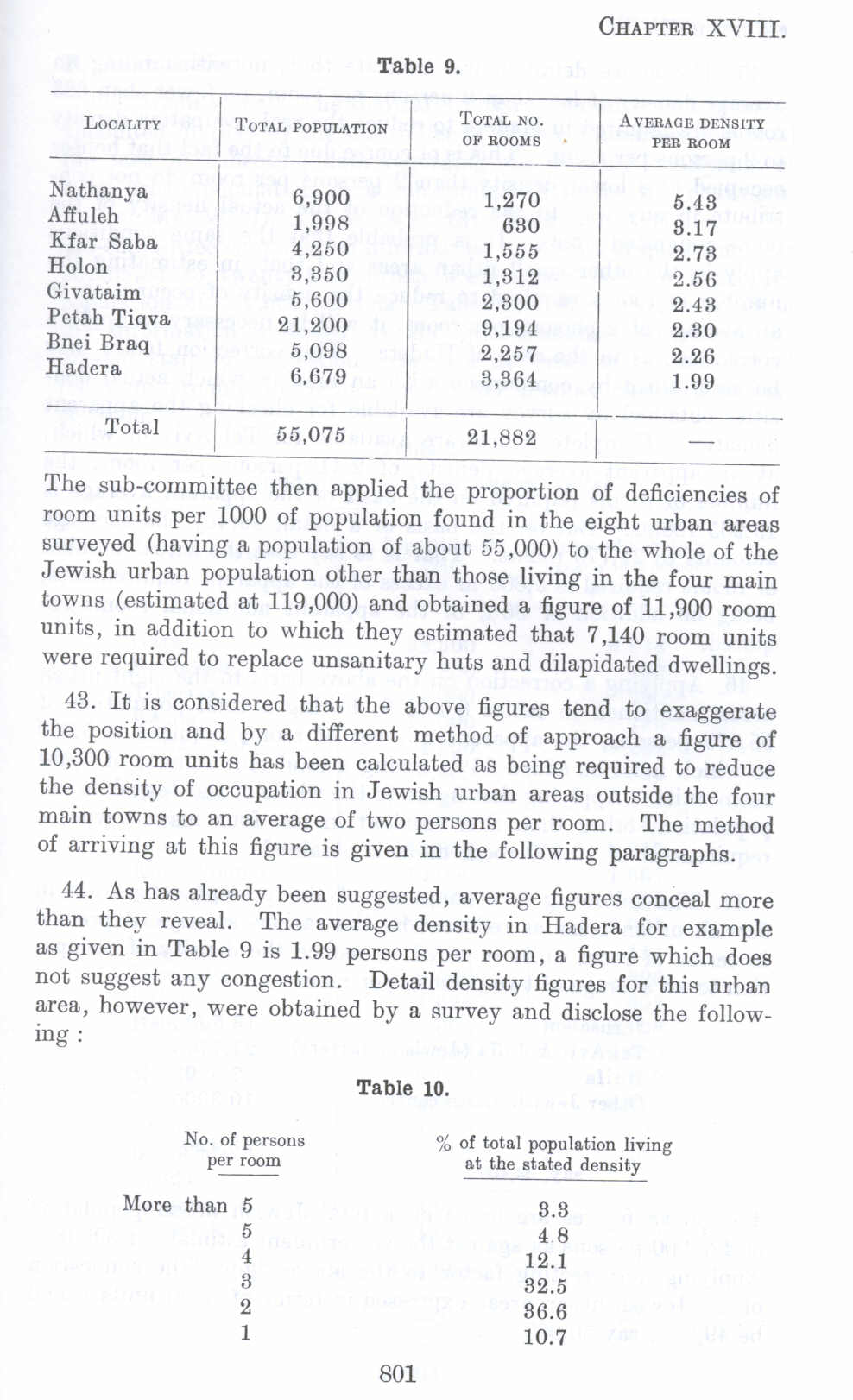 43. It is considered that the above figures tend to exaggerate the position and by a different method of approach a figure of 10,300 room units has been calculated as being required to reduce the density of occupation in Jewish urban areas outside the four main towns to an average of two persons per room. The method of arriving at this figure is given in the following paragraphs.