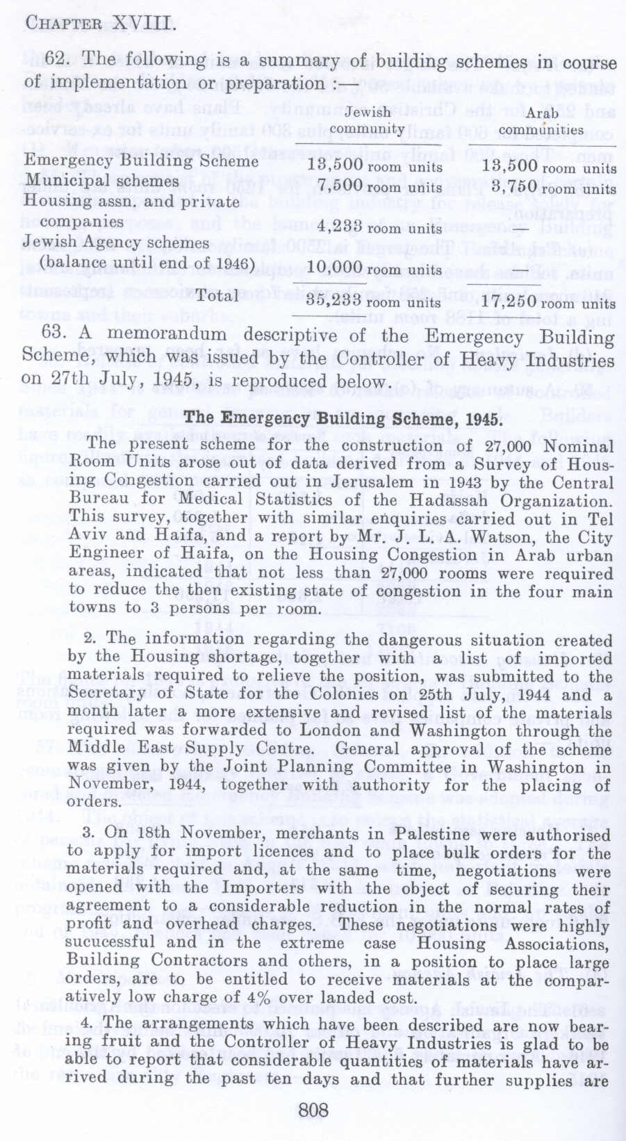 The Emergency Building Scheme taken by the government of Palestine before 1948 (Nakba), British Mandate: A Survey of Palestine: Volume II - Page 808. Chapter XVIII: Town Planning and The Problem of Housing : Section 3: Measures Taken To Remedy The Position in Housing |