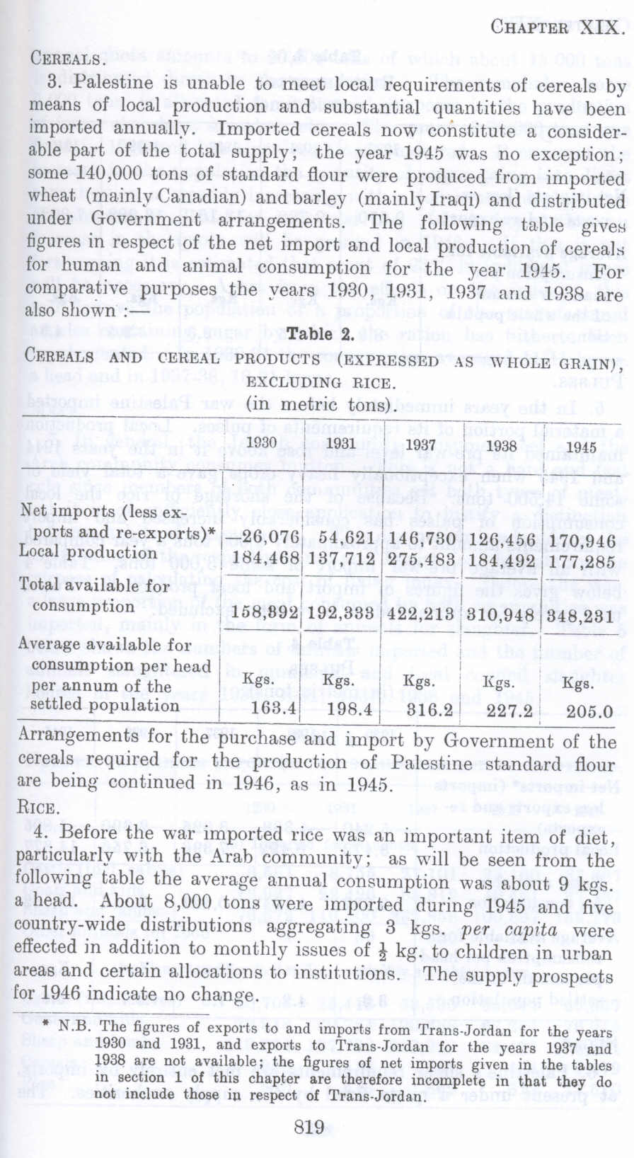 Arrangements for the purchase and import by Government of the cereals required for the production of Palestine standard flour are being continued in 1946, as in 1945.