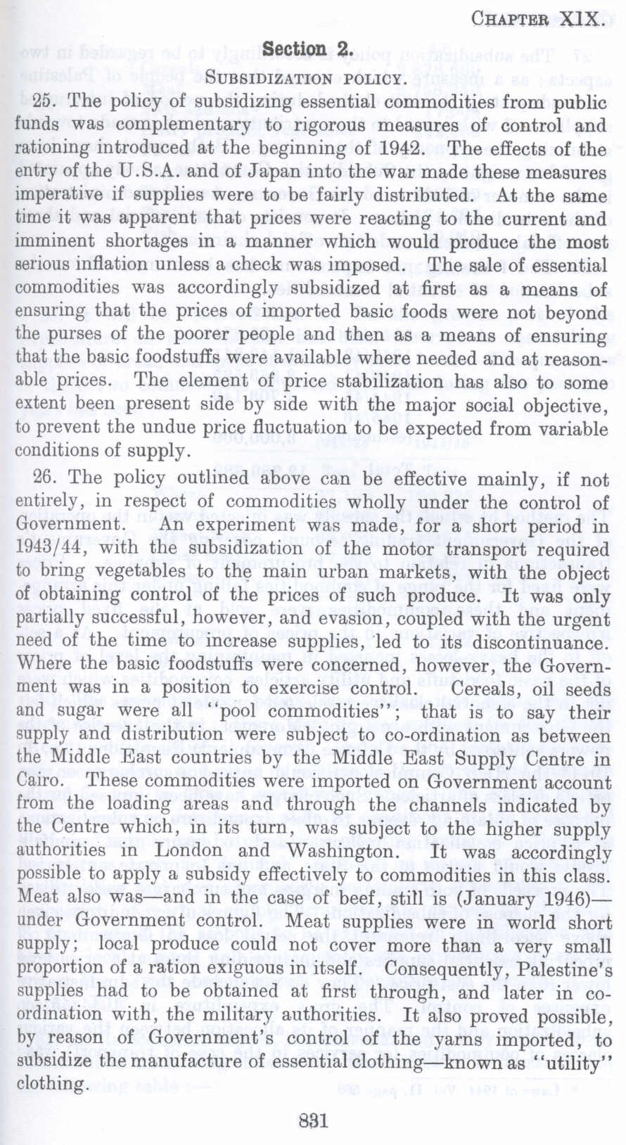 Food And Clothing Subsidization Policy by the government of Palestine before 1948 (Nakba), British Mandate: A Survey of Palestine: Volume II - Page 831. Chapter XIX |