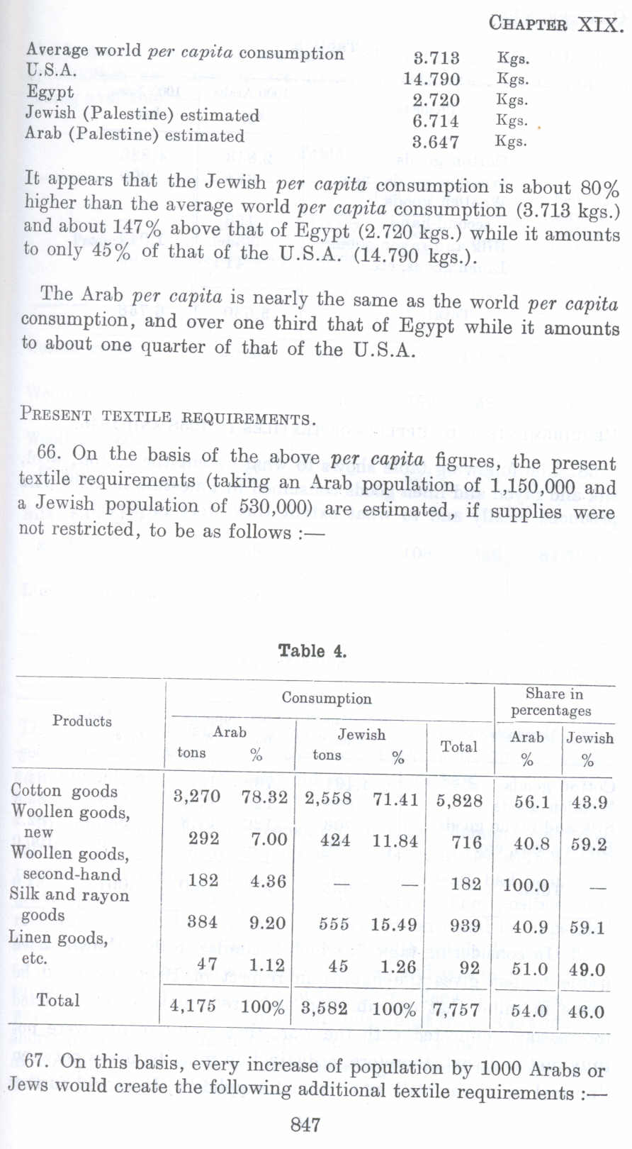 67. On this basis, every increase of population by 1000 Arabs or Jews would create the following additional textile requirements :-