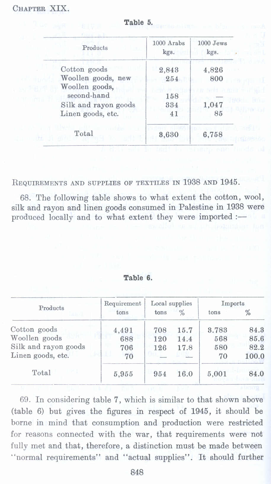 69. In considering table 7, which is similar to that shown above (table 6) but gives the figures in respect of 1945, it should be borne in mind that consumption and production were restricted for reasons connected with the war, that requirements were not fully met and that, therefore, a distinction must be made between "normal requirements" and "actual supplies". It should further