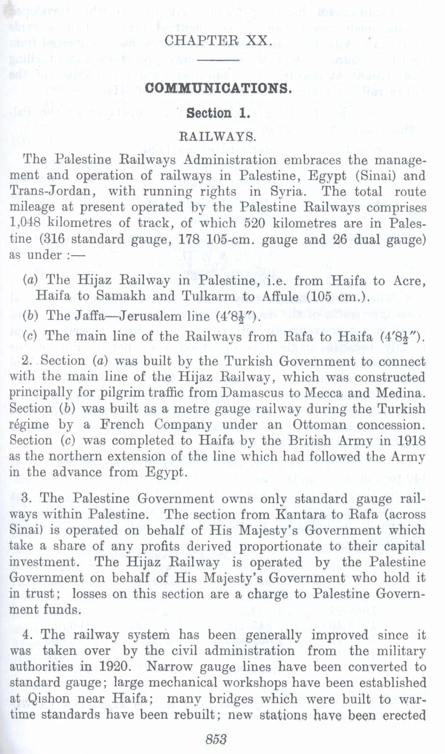 Communication in Palestine: (1) Railways before 1948 (Nakba), British Mandate: A Survey of Palestine: Volume II - Page 853. Chapter XX |