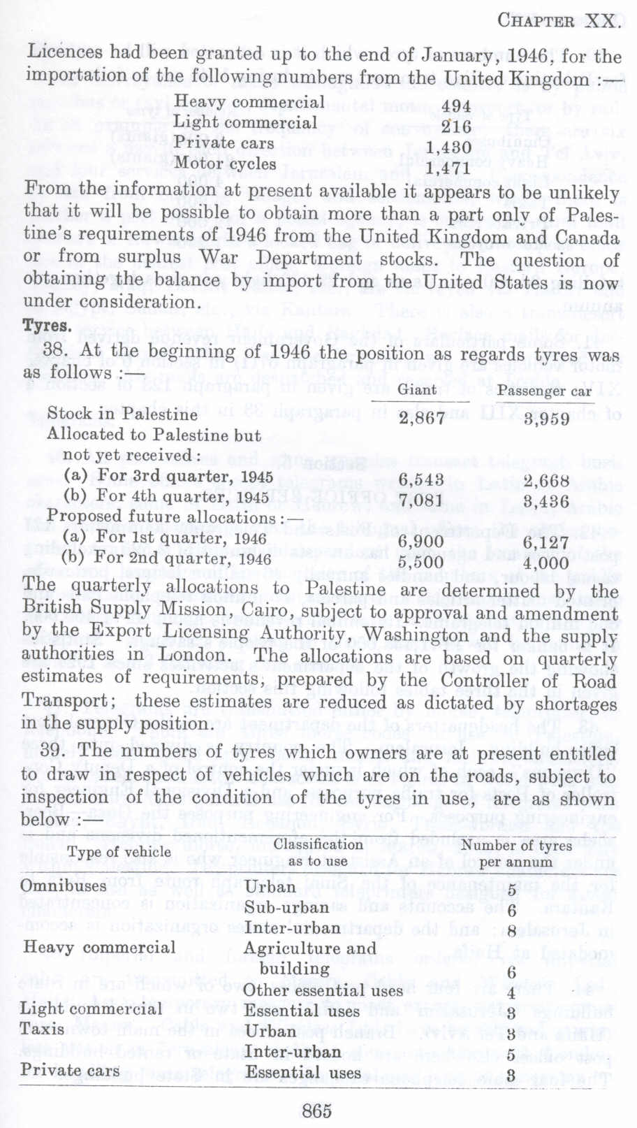 38. At the beginning of 1946 the position as regards tyres was as follows:-