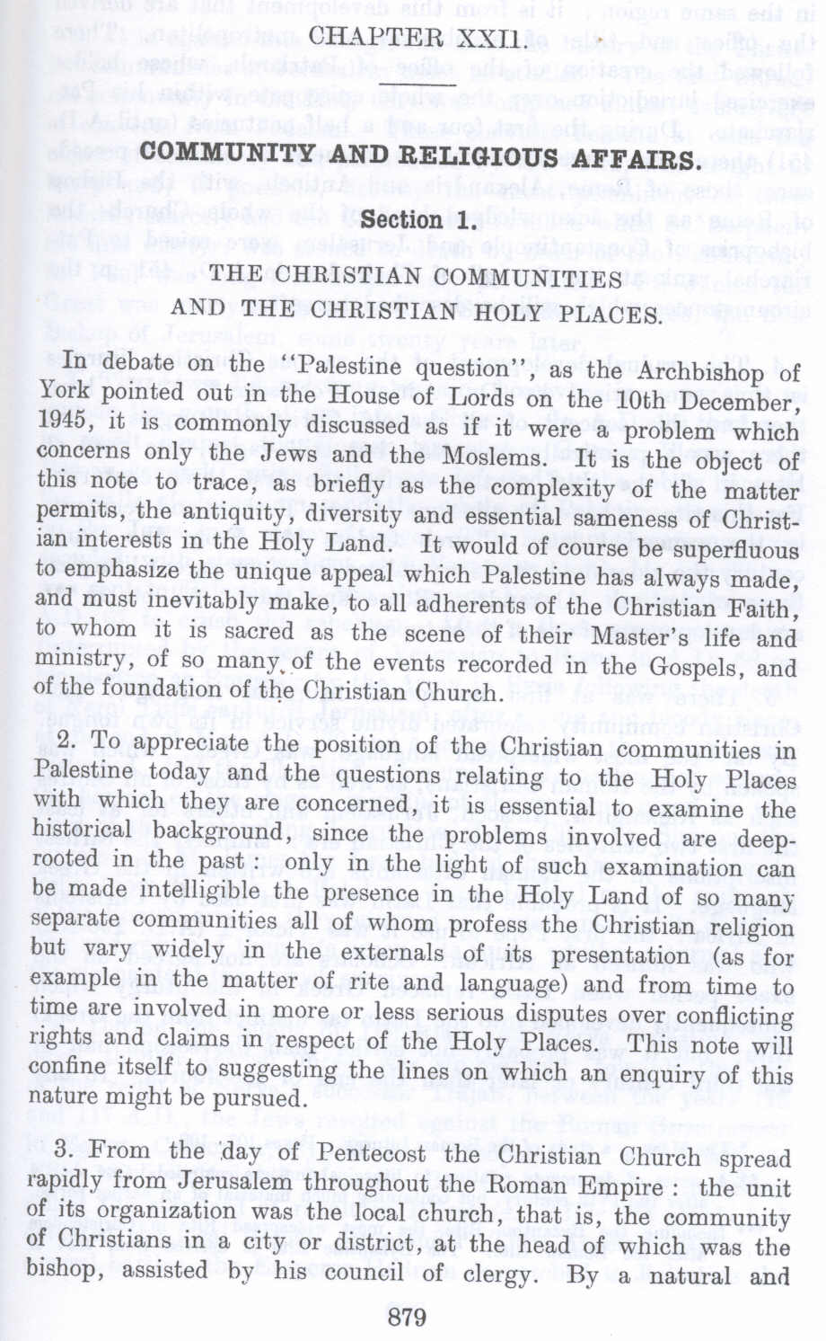 Christian Community And Christian Holy Places in Palestine before 1948 (Nakba), British Mandate: A Survey of Palestine: Volume II - Page 879. Chapter XXII: Community And Religious Affairs: Section 1 |