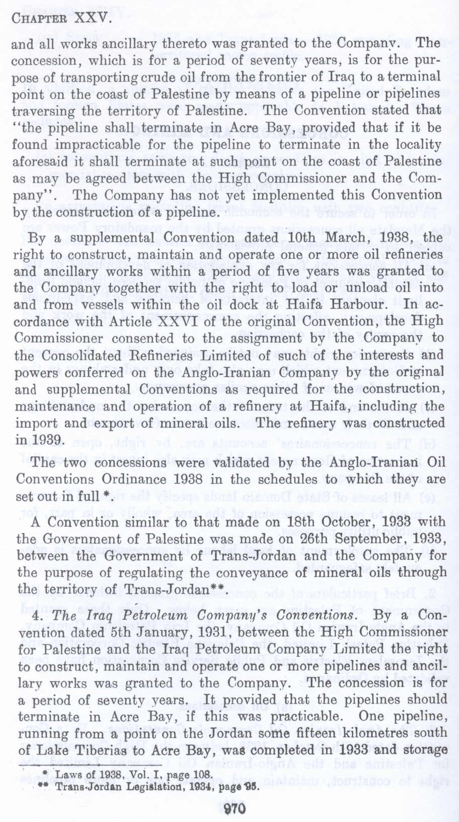 A Convention similar to that made on 18th October, 1933 with the Government of Palestine was made on 26th September, 1933, between the Government of Trans-Jordan and the Company for the purpose of regulating the conveyance of mineral oils through the territory of Trans-Jordan**.