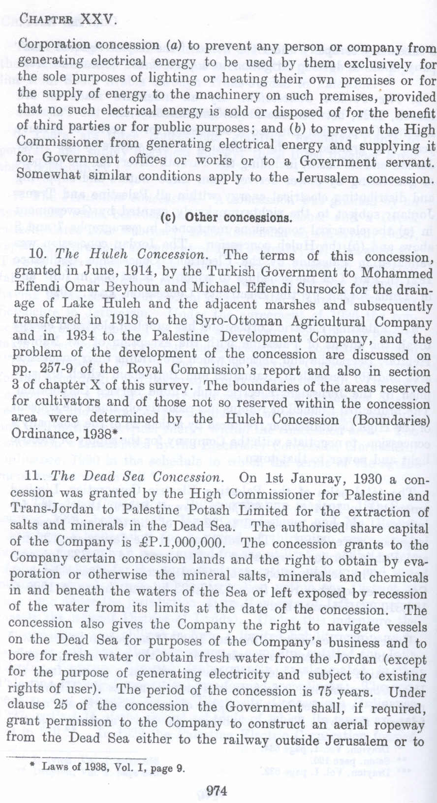 Other (i.e Huleh & Dead Sea) Concessions in Palestine before 1948 (Nakba), British Mandate: A Survey of Palestine: Volume II - Page 974. Chapter XXV: Concessions and Mining : Section 1: Concessions : (c) |