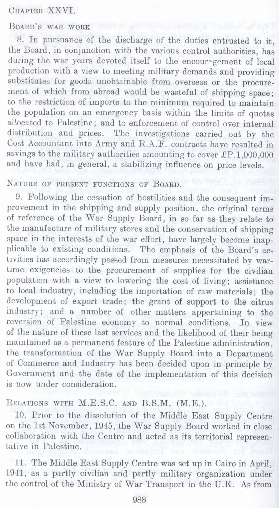 10. Prior to the dissolution of the Middle East Supply Centre on the 1st November, 1945, the War Supply Board worked in close collaboration with the Centre and acted as its territorial representative in Palestine.