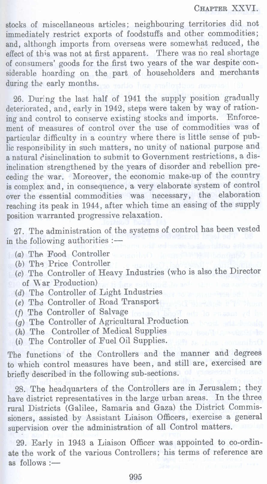 29. Early in 1943 a Liaison Officer was appointed to co-ordinate the work of the various Controllers; his terms of reference are as follows:-