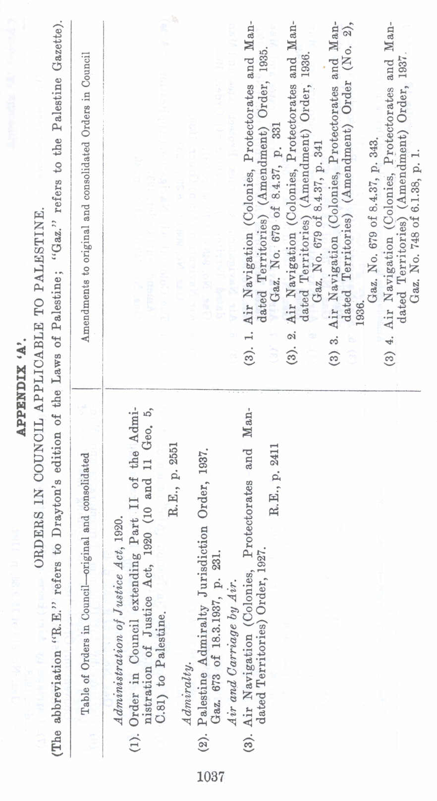 British Mandate: A Survey of Palestine: Volume II - Page 1037. Appendix A: Orders in Council Applicable to Palestine before 1948 (Nakba), |