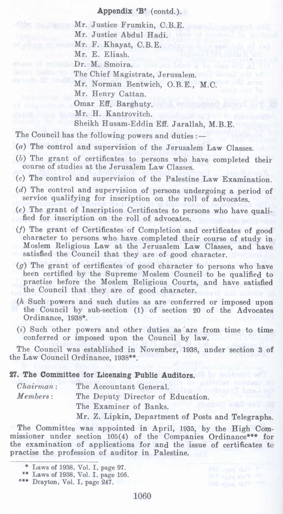 The Committee was appointed in April, 1935, by the High Commissioner under section 105(4) of the Companies Ordinance*** for the examination of applications for and the issue of certificates to practise the profession of auditor in Palestine.