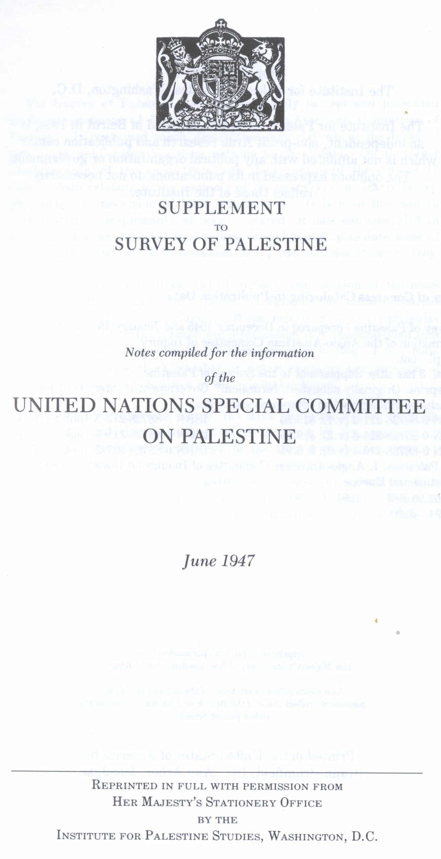 Supplement to Survey of Palestine: Preface British Mandate: A Survey of Palestine: Introduction - Page 1 |