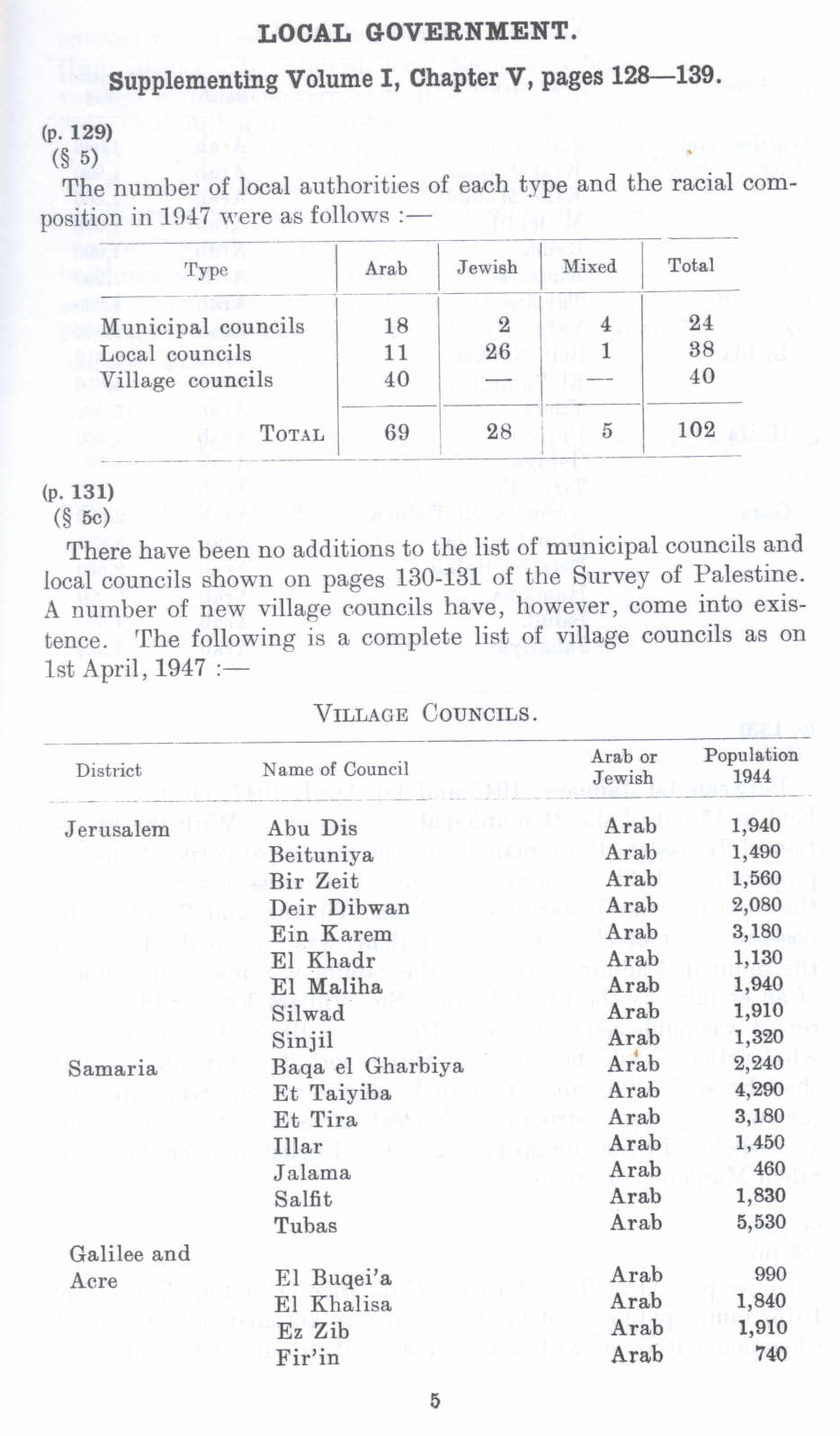 Local Government in Palestine : British Mandate: A Survey of Palestine: Supplement - Page 5 |