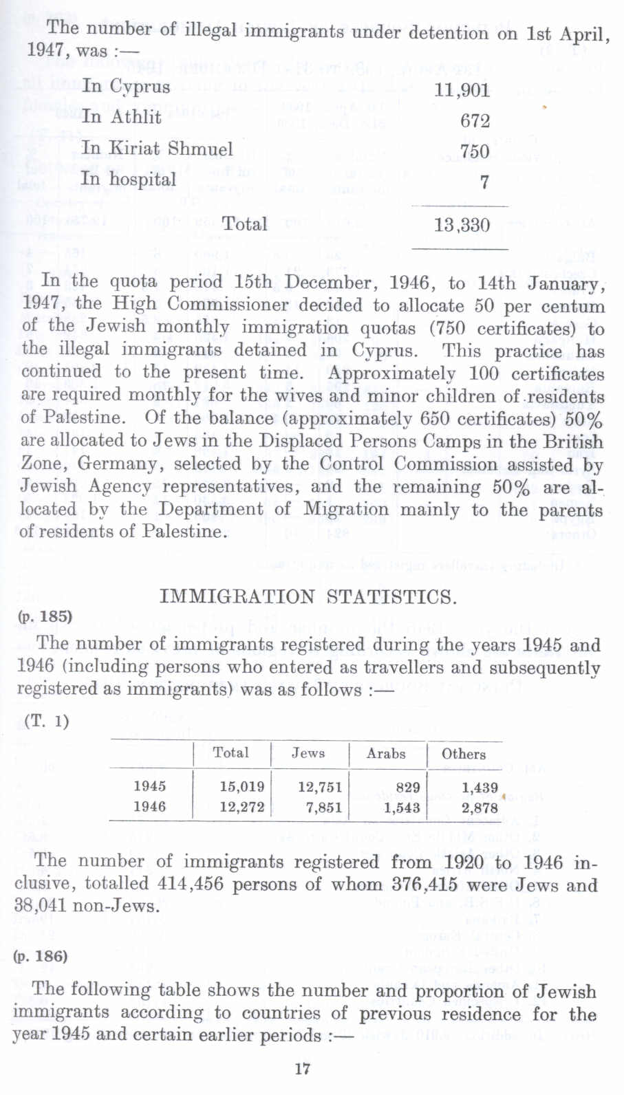 Immigration Statistics in Palestine before Nakba: British Mandate: A Survey of Palestine: Supplement - Page 17 |