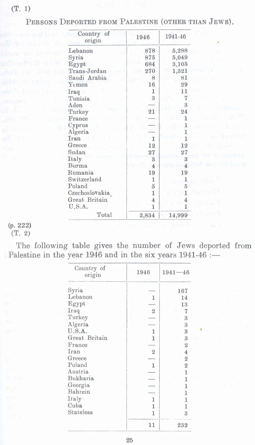 Persons Deported From Palestine (other than Jews) & Jews Deported From Palestine before Nakba, British Mandate: A Survey of Palestine: Supplement - Page 25 |