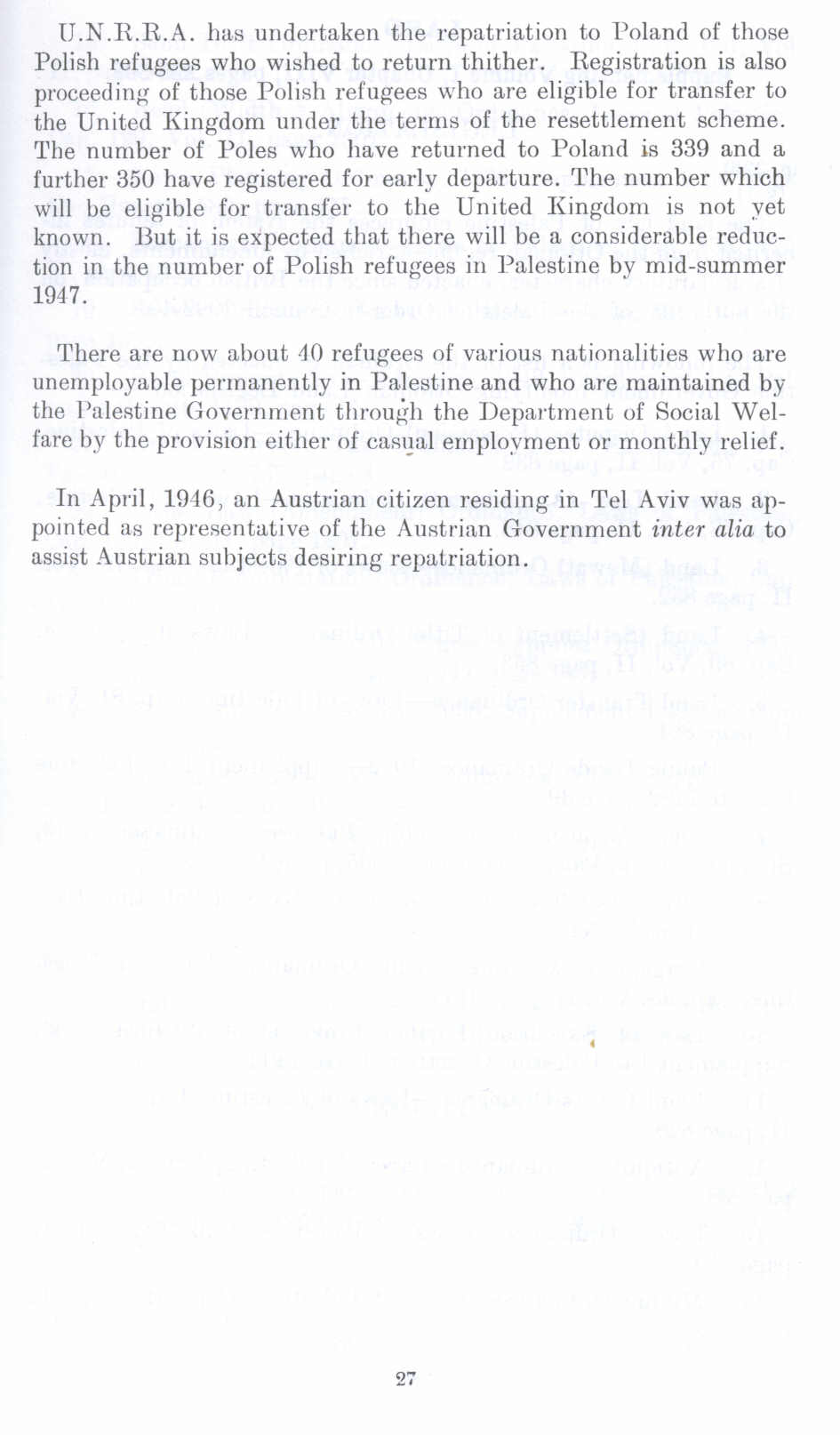 In April, 1946, an Austrian citizen residing in Tel Aviv was appointed as representative of the Austrian Government inter alia to assist Austrian subjects desiring repatriation.