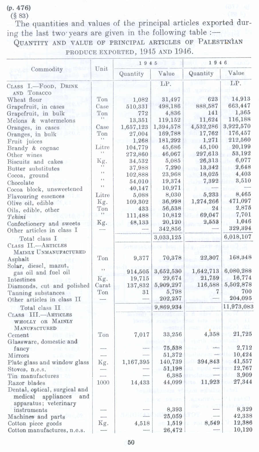 QUANTITY VALUE OF PRINCIPAL ARTICLES OF PALESTINIAN PRODUCE EXPORTED, 1945 AND 1946.