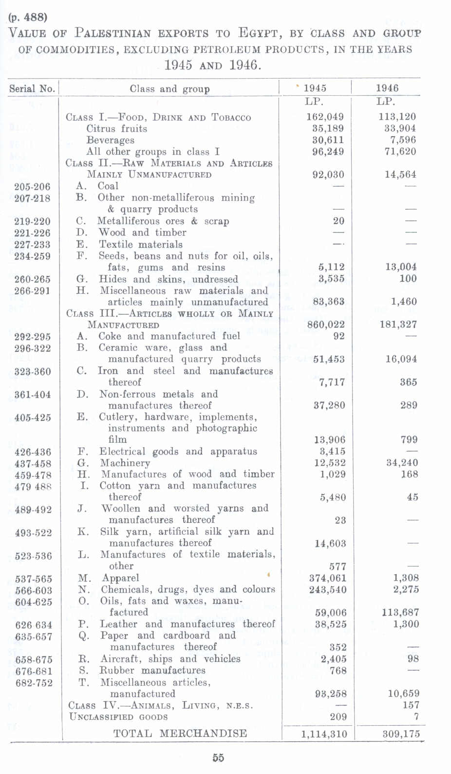 VALUE OF PALES1'JNIAN EXPORTS TO EGYPT, BY CLASS AND GROUP or COMMODITIES, EXCLUDING PETROLEUM PRODUCTS, IN THE YEARS 1945 AND 1946.