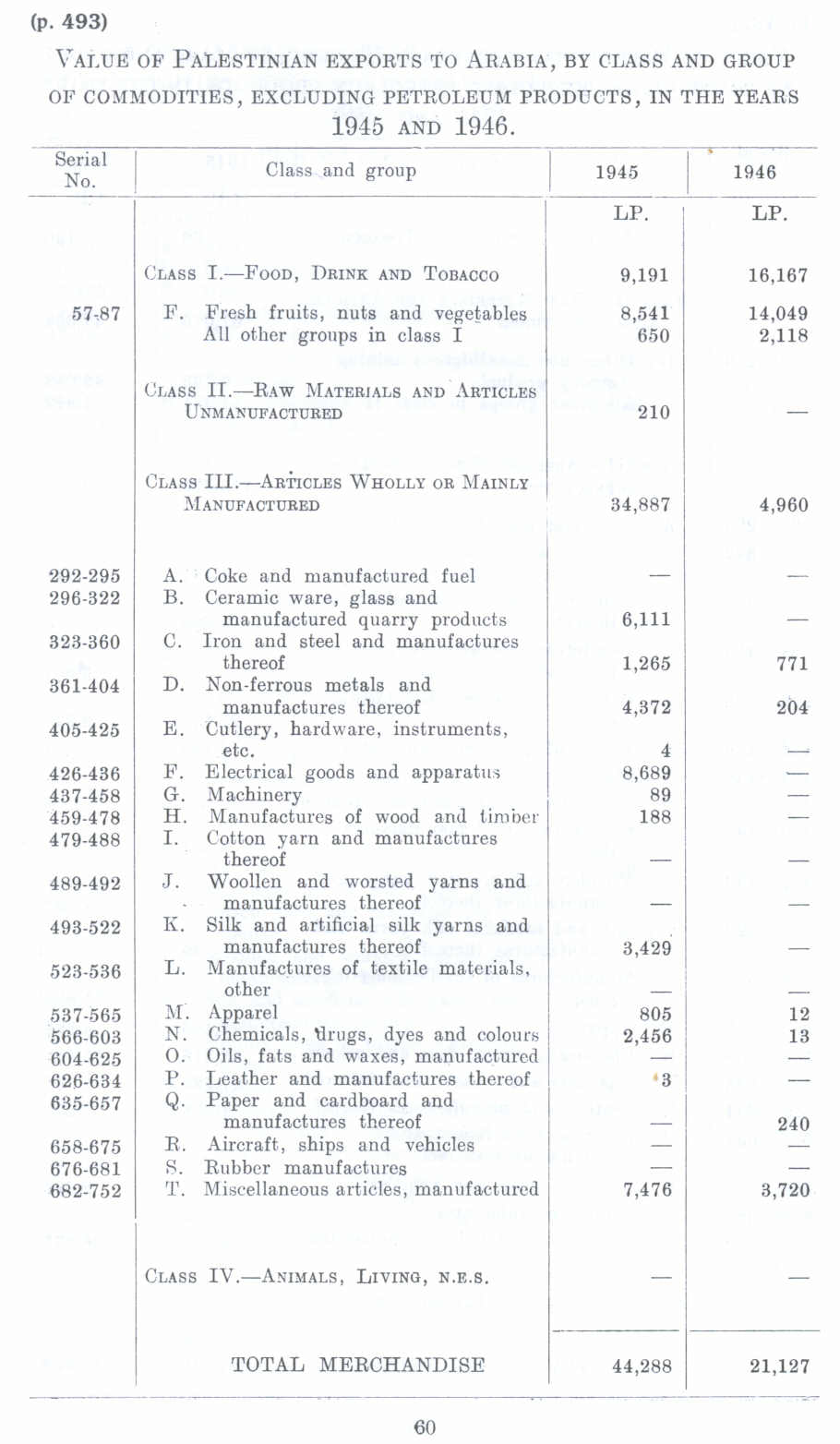 VALUE OF PALESTINIAN EXPORTS TO ARABIA, BY CLASS AND GROUP OF commodities , EXCLUDING PETROLEUM PRODUCTS IN THE YEARS 1945 AND 1946.