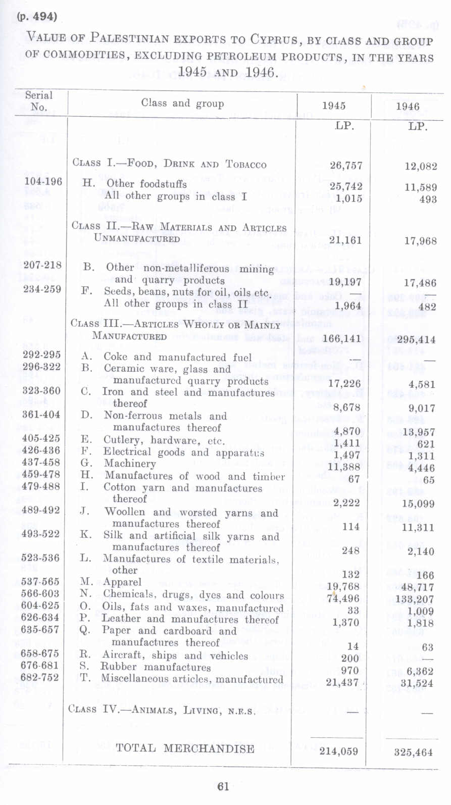 VALUE OF Palestinian EXPORTS TO CYPRUS BY CLASS AND GROUP OF COMMODITIES, EXCLUDING PETROLEUM PRODUCTS, IN THE YEARS 1945 AND 1946.