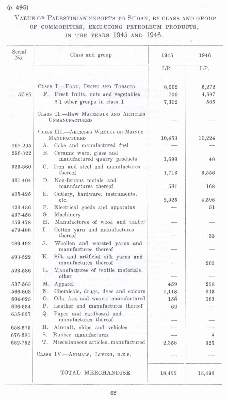 VALUE OF Palestinian EXPORTS TO SUDAN BY CLASS AND GROUP OF COMMODITIES, EXCLUDING PETROLEUM PRODUCTS, IN THE YEARS 1945 AND 1946.