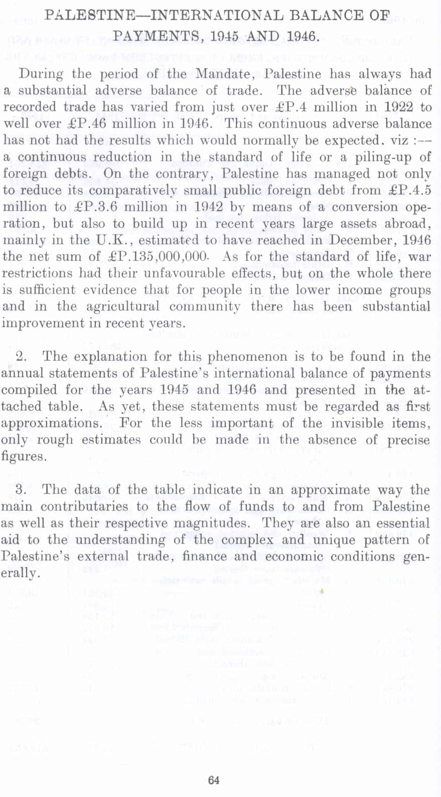 Palestine - International Balance of Payment before Nakba, for the years of 1945 And 1946, British Mandate: A Survey of Palestine: Supplement - Page 64 |