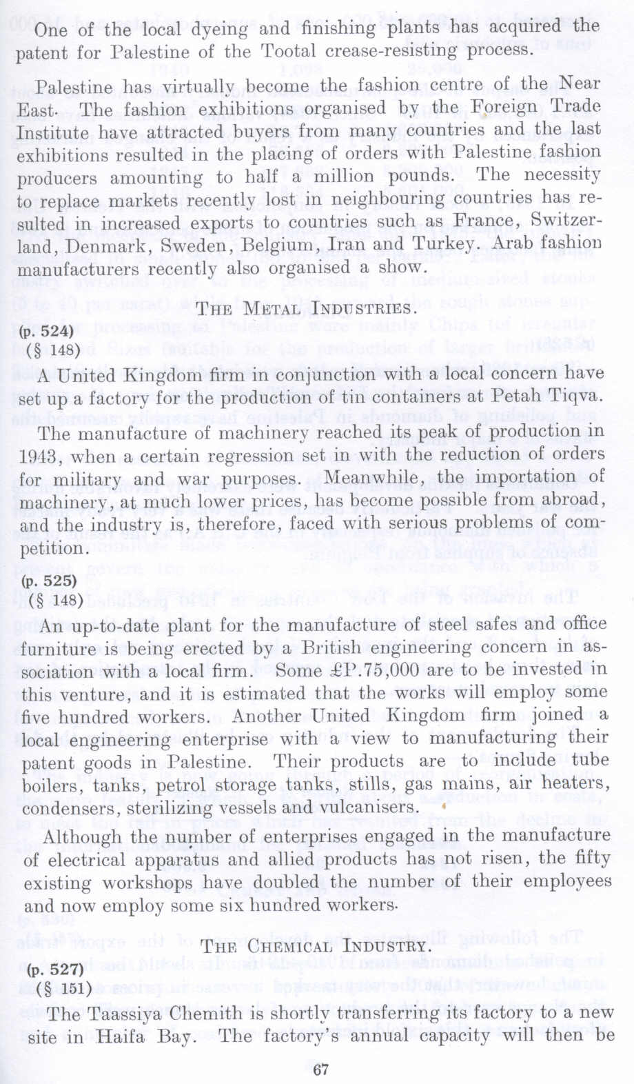 Palestine's Industry before Nakba: Metal & Chemical Industries, British Mandate: A Survey of Palestine: Supplement - Page 67 |