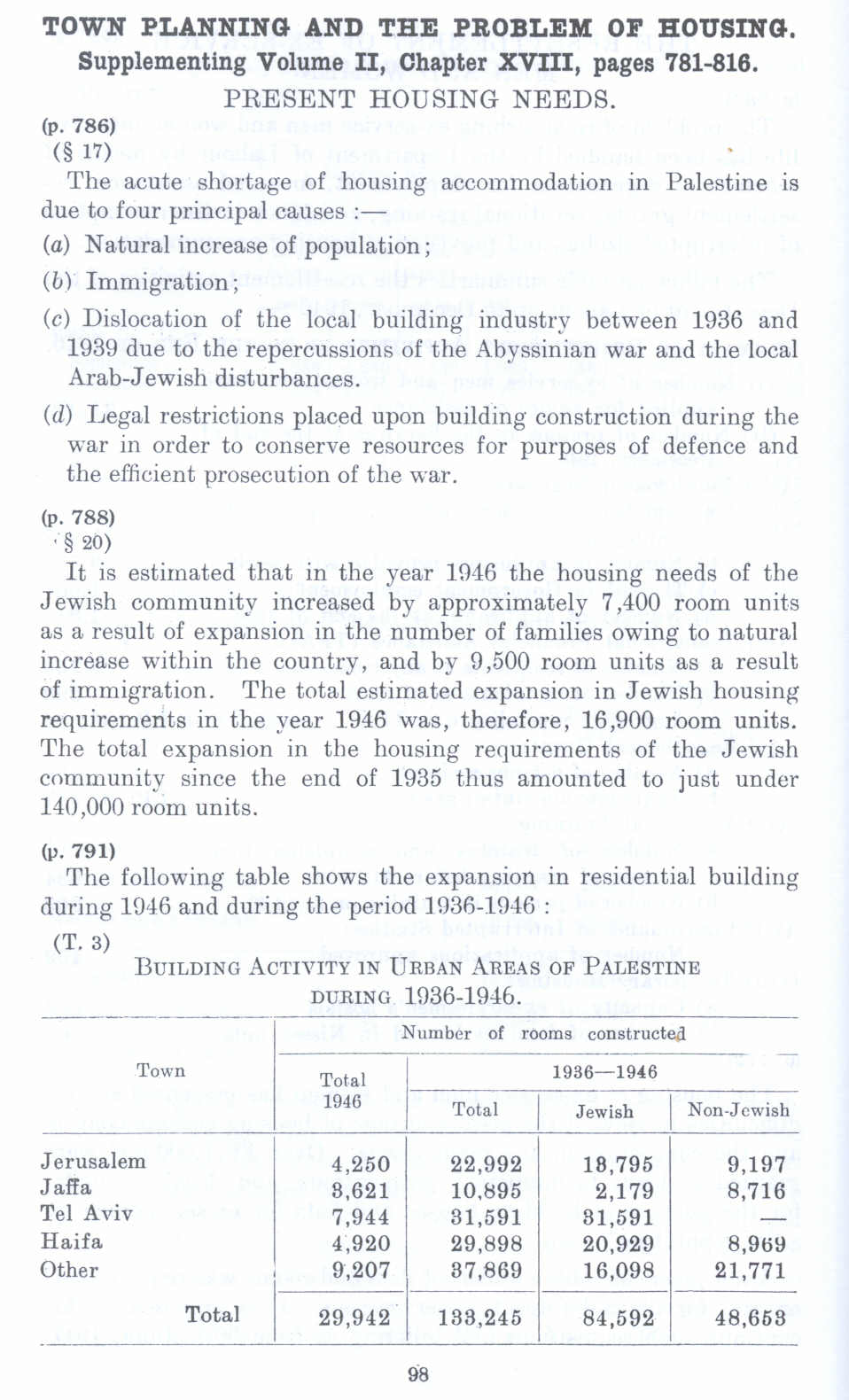 It is estimated that in the year 1946 the housing needs of the Jewish community increased by approximately 7 ,400 room units as a result of expansion in the number of families owing to natural increase within the country, and by D,500 room units as 11 result of immigration. The total estimated expansion in Jewish housing requirements in the year 1946 was, therefore, 16,900 room units. The total expansion in the housing requirements of the Jewish community since the end of 1935 thus amounted to just under 140,000 room units.