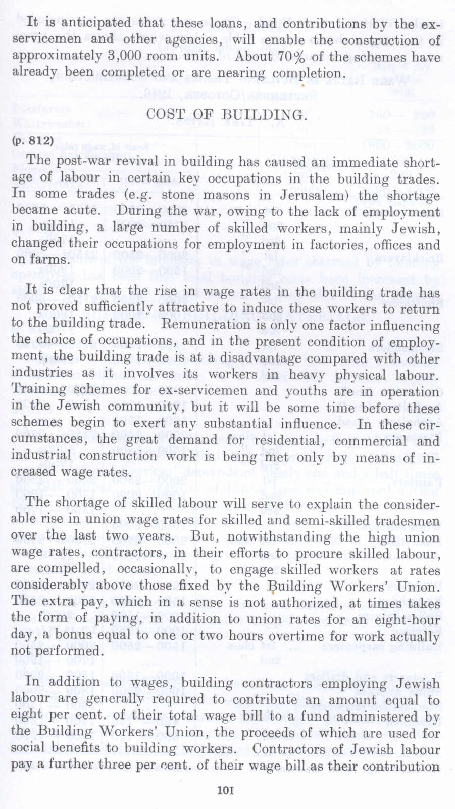 Cost of Building/construction in Palestine before Nakba, British Mandate: A Survey of Palestine: Supplement - Page 101 |