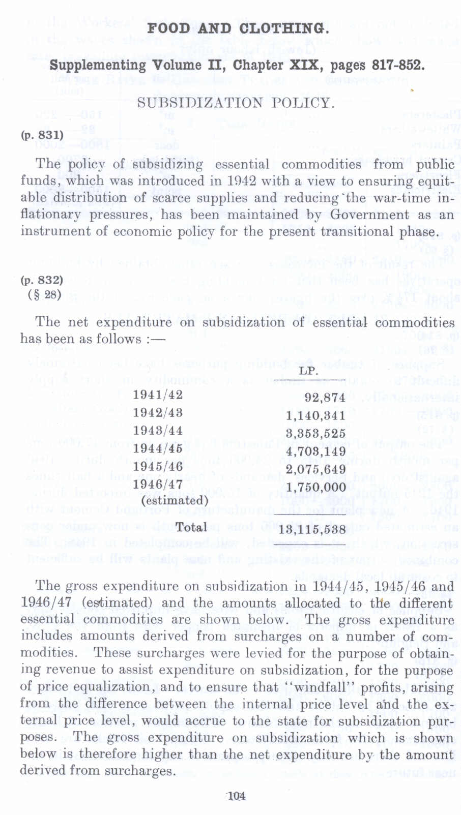 Food And Clothing & Subsidizing Policy in Palestine before Nakba: Supplementing Volume II, Chapter XIX, Pages 817-852, British Mandate: A Survey of Palestine: Supplement - Page 104 |
