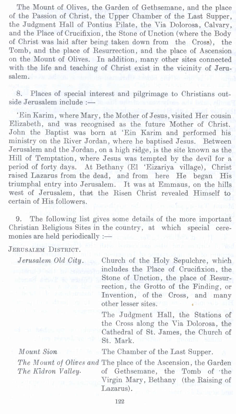 8. Places of special interest and pilgrimage to Christians outside Jerusalem include :-