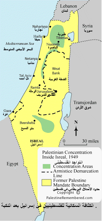 خرائط لفلسطين: الكثافة السكانية للفلسطينيين في الاراضي المحتلة بعد النكبة |