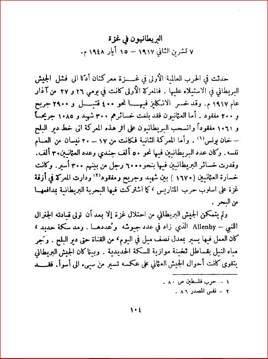 البريطانيون في غزة 7 تشرين الثاني 1917 - 15 أيار 1948 - بلادنا فلسطين، صفحة 104 |