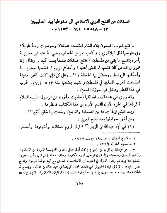 عسقلان من الفتح العربي الإسلامي الى سقوطها بيد الصليبيين644 - 1153 م - بلادنا فلسطين، صفحة 158 |