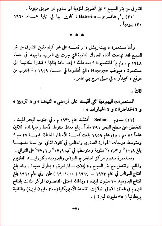 المستعمرات التي أقيمت على أراضي التياها والترابين والحناجرة والجبارات - بلادنا فلسطين، صفحة 370 |