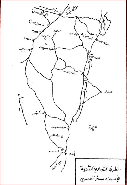 خارطة تبيّن الطرق التجارية القديمة في بلاد بئر السبع - بلادنا فلسطين، صفحة 378 |