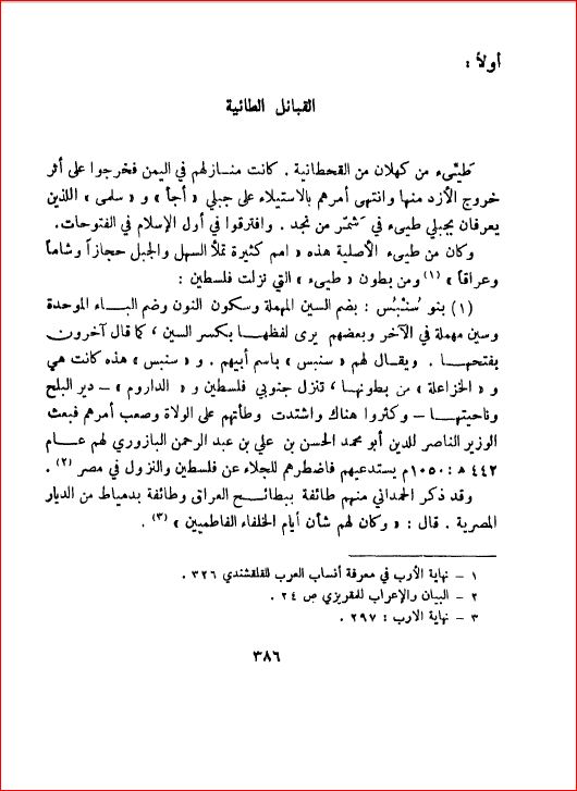 أولا: القبائل الطائية، محافظة بئر السبع - بلادنا فلسطين، صفحة 386 |