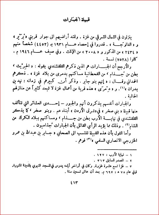 قبيلة الجبارات، محافظة بئر السبع - بلادنا فلسطين، صفحة 413 |